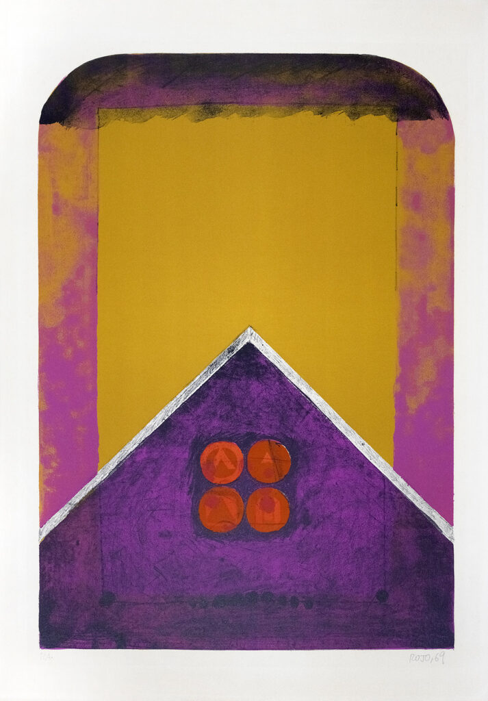 Rojo no pintaba imágenes, sino sistemas. Su pintura se construye desde la geometría, pero no como ejercicio frío, sino como ritual emocional. Cada serie es una investigación formal que se convierte en metáfora: del país, del exilio, de la memoria, del lenguaje.